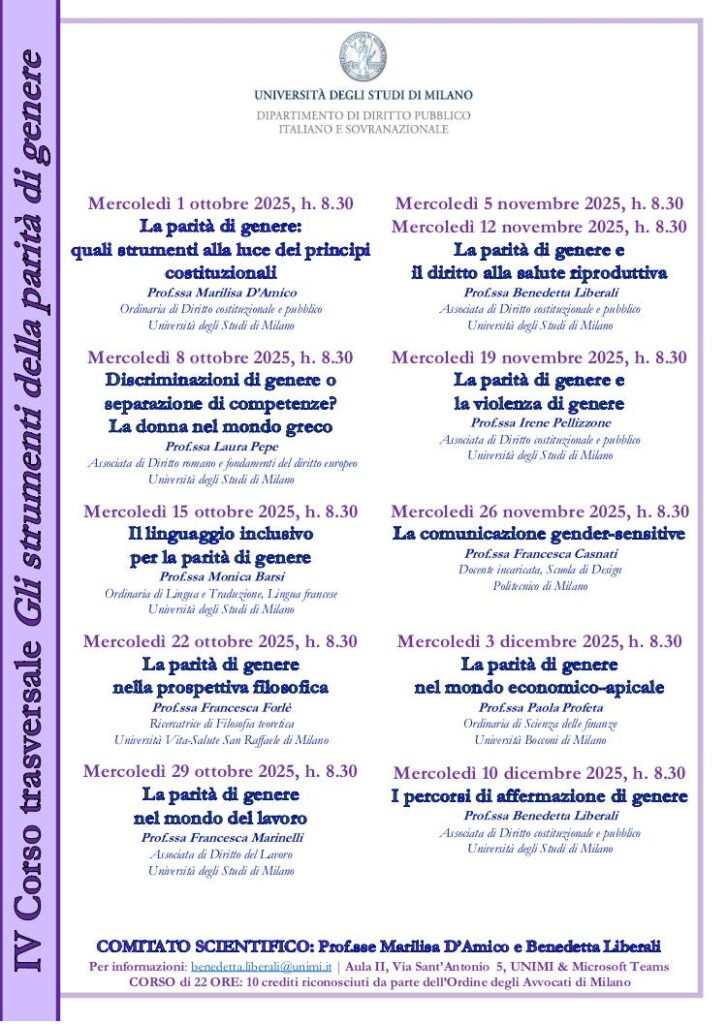 Università degli Studi di Milano, Dipartimento di Diritto Pubblico Italiano e Sovranazionale. – corso di 22 ore